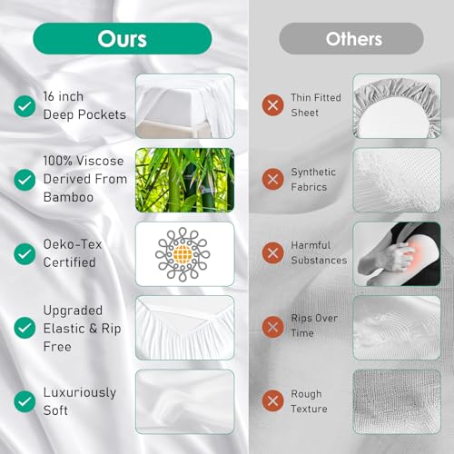 100% Rayon Derived from Bamboo, Cooling Sheets for King Size Bed Set, Breathable & Silky Soft, Hotel Bedding Sheets & P100% Rayon Derived from Bamboo, Cooling Sheets for King Size Bed Set, Breathable & Silky Soft, Hotel Bedding Sheets & P