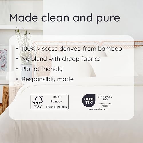 These 100% viscose derived from bamboo sheets offer the purest, most natural luxury. Free from blends with other fabrics or synthetic materials, they are FSC and OEKO-TEX Standard 100 certified. This ensures sustainable sourcing and gentleness on both the environment and your skin.