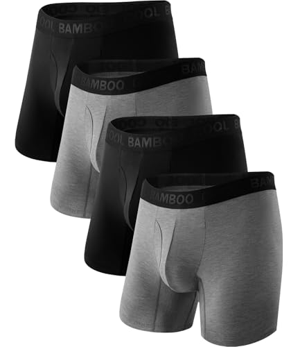 Bamboo Cool Men’s Breathable Soft Moisture-Wicking Regular Leg Boxer Briefs with Fly 4 Pack