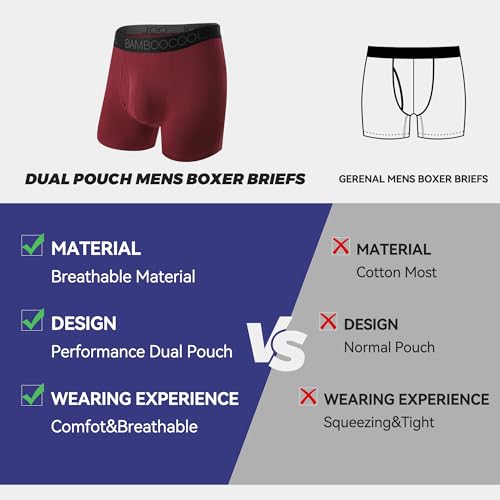 Bamboo Cool Men's Dual Pouch Boxer Briefs Support Ball Pouch Breathable Underwear - 4 PackBamboo Cool Men’s Dual Pouch Boxer Briefs Support Ball Pouch Breathable Underwear – 4 Pack