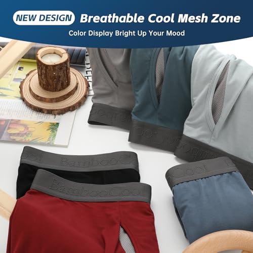 BAMBOO COOL Men's Ultra Breathable Underwear Mesh Boxer Briefs No Ride Up MultipackBAMBOO COOL Men’s Ultra Breathable Underwear Mesh Boxer Briefs No Ride Up Multipack
