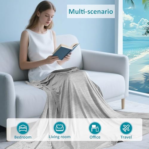 Bamboo Cooling Blanket for Night Sweats – Double-Sided Soft Summer Blanket, Breathable Cold Throw for Home Office – 59″x