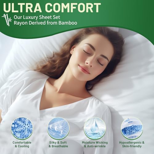 Our sheet set is crafted from 100% organic rayon derived from bamboo. This ensures a soft, breathable sleep experience, safe for sensitive and allergy-prone skin. The hypoallergenic and moisture-wicking properties make our sheets ideal for all skin types.