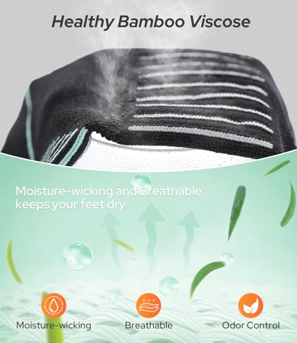 Made from bamboo viscose, these ankle socks offer excellent moisture-wicking and odor-resistant properties, keeping your feet cool and dry even during intense workouts or hot summer days.