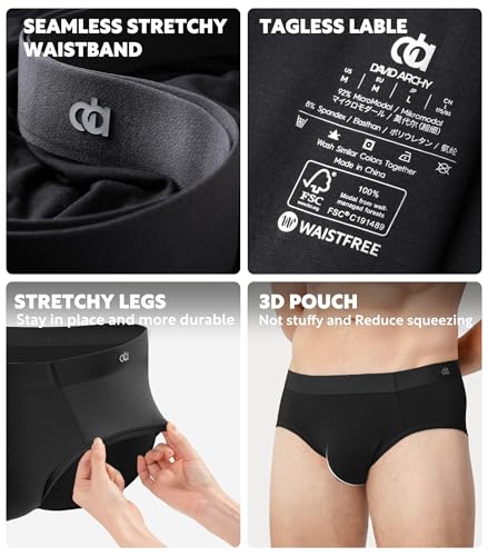 PERFECT FIT & LASTING COMFORT: Designed with a high-stretch seamless waistband, our ultra-soft micro modal briefs stay snug without any tags causing discomfort. The fabric won’t fade or lose its elasticity, even after multiple washes and dryings, ensuring lasting comfort and support.