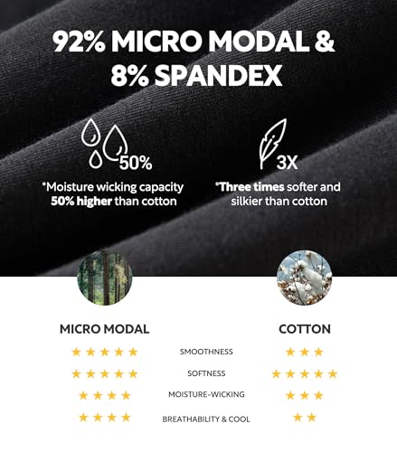 FEELS LIKE SECOND SKIN: Our luxurious micro modal fabric is naturally derived from responsibly sourced wood-based materials. This fabric is three times softer than cotton, cool against the skin, and silky to the touch. It’s comfortable, durable, and lightweight.