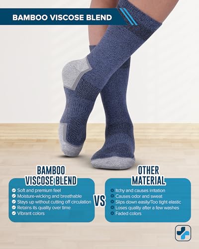 Doctor’s Select Bamboo Viscose Diabetic Socks for Men | Neuropathy Socks | Black, White, Grey, Dark Grey, Navy, Blue D