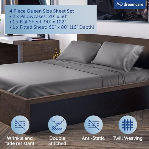 Get everything you need for your queen-sized bed all in one package. Included are 2 pillow cases (20″ x 30″), 1 flat sheet (90″ x 102″), and 1 fitted sheet (60″ x 80″ x 16″). Our queen set is designed to meet all your bedding needs.
