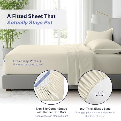 - Perfect Fit with Extra Depth: Our extra deep pocket fitted sheet ensures a snug and secure fit for mattresses up to 17″ inches thick, thanks to heavy-duty non-slip elastic straps and elastic all around.