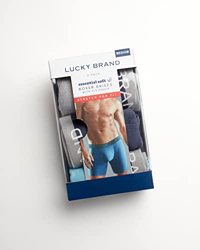 Lucky Brand Super Soft 3 Pack Mens Boxer Briefs for Men with Functional Fly (S-XXL)