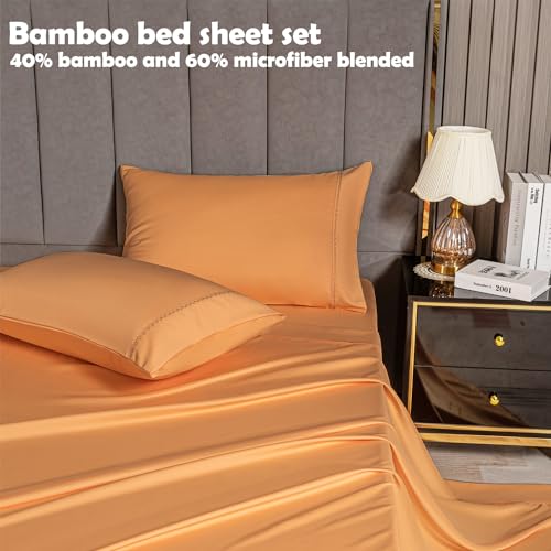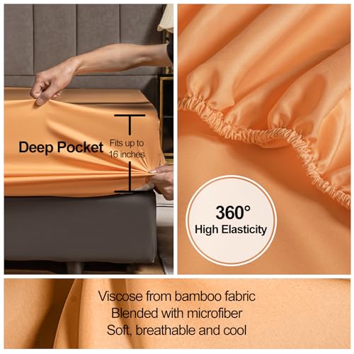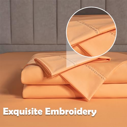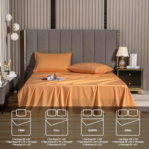 Redefine your bed with our King size bedding set, including a 4-piece set: 1 x flat sheet (105″x102″), 1 x fitted sheet (78″x80″), and 2 matching pillowcases (20″x40″). The Buff Orange color brings an elegant touch to your room.