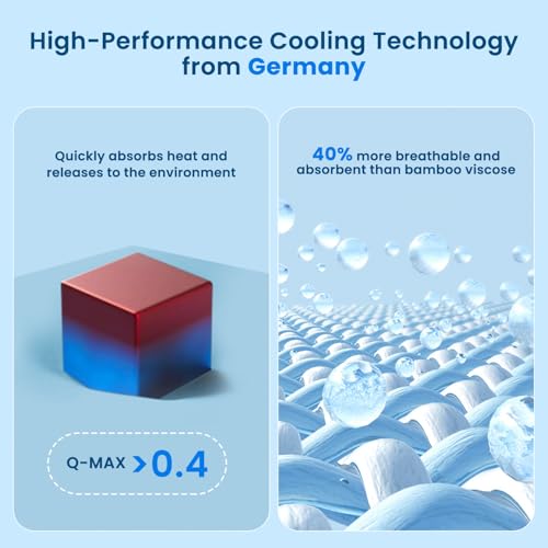 Experience instant relief with our cooling comforter, designed specifically for hot sleepers. Featuring revolutionary Q-MAX>0.4 technology, this comforter boasts twice the thermal conductivity of regular cooling fabrics. Upon contact, you’ll instantly feel 5°F cooler. It’s also three times more breathable and absorbent than cotton, ensuring you stay refreshed and dry all night. With the perfect balance of coolness and breathability, this comforter helps you maintain ideal temperatures for optimal sleep.