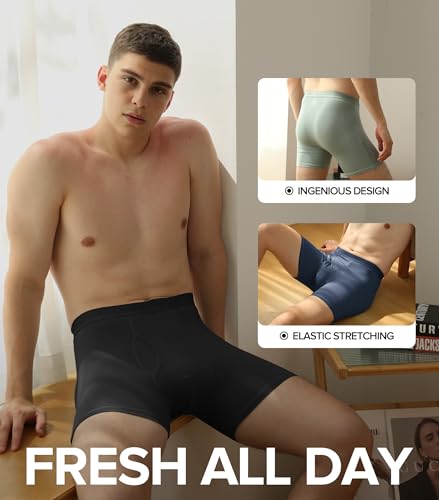 Natural Feelings Mens Breathable Underwear Bamboo Viscose Boxer Briefs Regular Long Open Fly 5-Pack Natural Feelings M