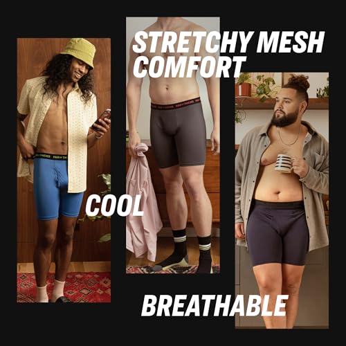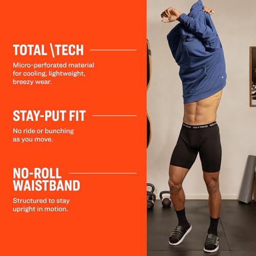 Say goodbye to annoying ride-ups! With a 6-inch inseam and 4-way stretch, these boxer briefs move with you without bunching or chafing. The tag-free waistband adds to the comfort.