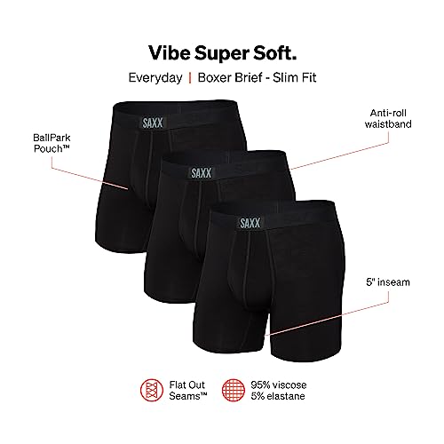 SAXX Men's Super Soft Boxer Brief with Pouch Vibe 3Pk Cool Comfortable Mens UnderwearSAXX Men’s Super Soft Boxer Brief with Pouch Vibe 3Pk Cool Comfortable Mens Underwear