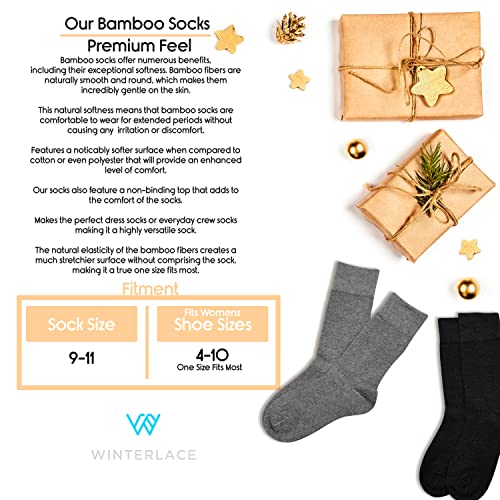Each pack includes 6 pairs of premium crew socks for women. Crafted from bamboo viscose rayon, these socks provide a soft, smooth texture that cradles your skin for all-day comfort. Ideal for those who appreciate a pampered experience with every wear.